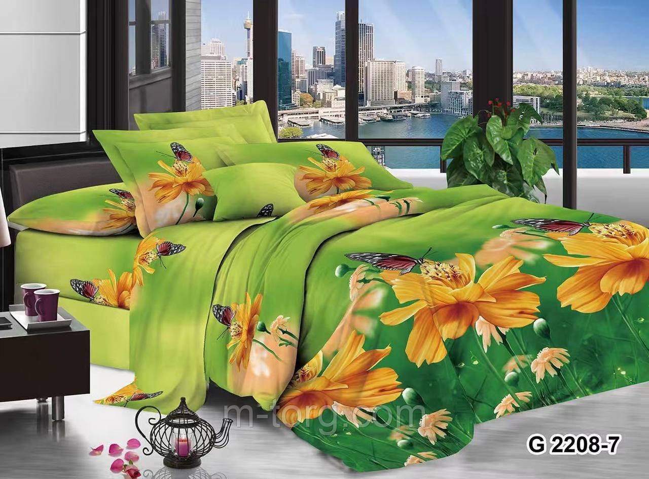 Сімейний комплект постільної білизни з ЗD-ефектом, фабричного виробництва, полібязь (бавовна 50%, бамбукове волокно 50%). Розмір простирадла 2*220 см,2 підковдри розміром 150*220 см, дві наволочки розміром 70/70 см. Постільна білизна з полібезі чудово вбирає вологу, чудово дихає, не липне до тіла, не електризується, вирізняється високою зносостійкістю.ЗD технологія нанесення малюнка забезпечує яскраві кольори та дає змогу тканині зберігати колір навіть після багаторазового прання. Полібезь — це різновид плетіння нитки, яка забезпечує міцність тканини, а також дає змогу заощаджувати на виробництві. Зрештою ми отримуємо недороге постільну білизну, яка тішитиме Вас довгий час.